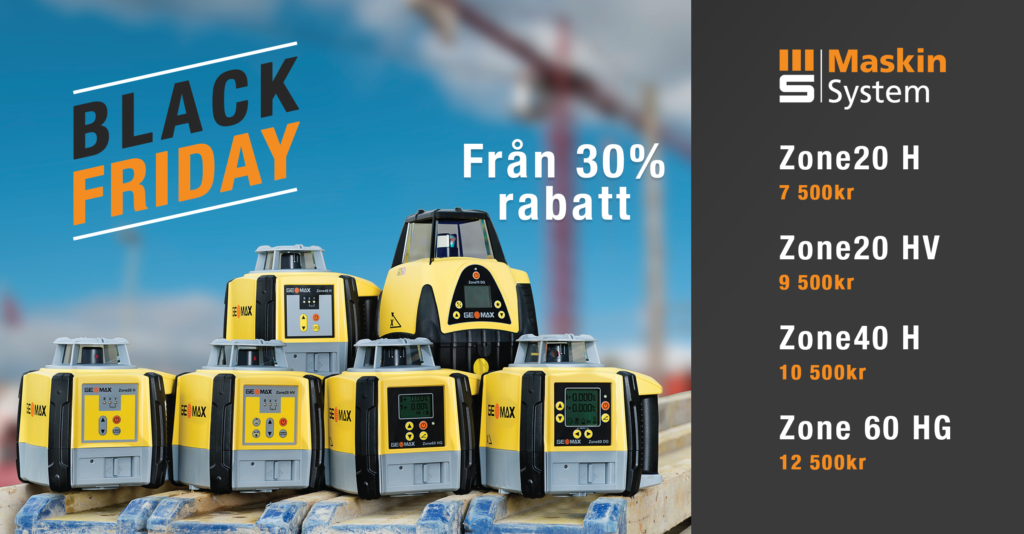BLACK FRIDAY PÅ MASKIN SYSTEM! Passa på att köpa er nya Geomax lasermätningsprodukter från 30% rabatt på ord. pris! I paketet priserna...
